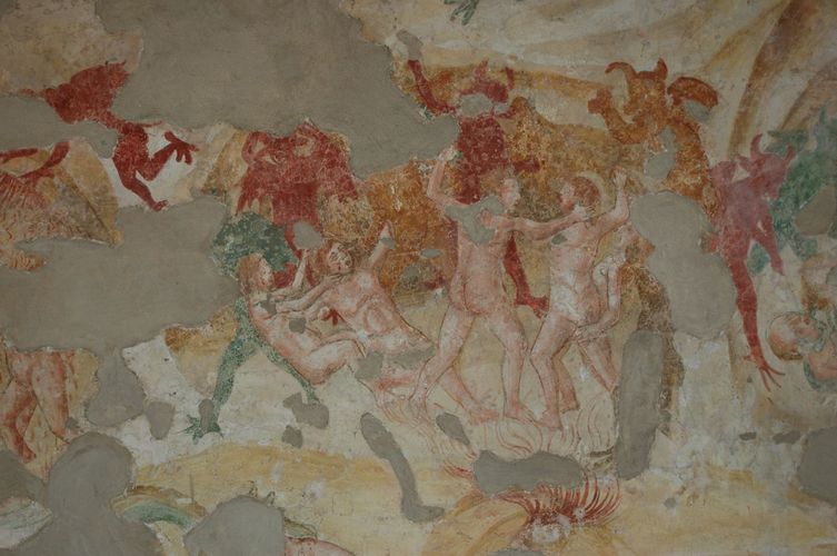 Appena varcato il portale d'ingresso, a sinistra si apre l'Inferno, affrescato da Antonio da Firenze.